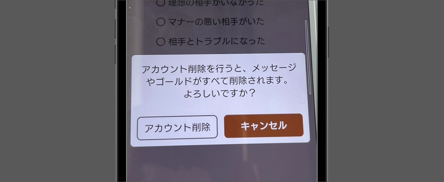 - アカウント削除理由を選択